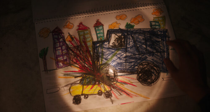 さらに確認出来るのは、団地の下には謎の巨大な空間があり異物が放置されている光景や、子供のイラスト帳に描かれた交通事故らしき絵と、“901”と血文字で書かれた気味が悪い描写を目の当たりにできる。また血を出しながら壁にすがる人物や、足に血痕が付着している赤いワンピース姿の女性も写しており、ホラー要素たっぷりな血塗られたカットも届いている。