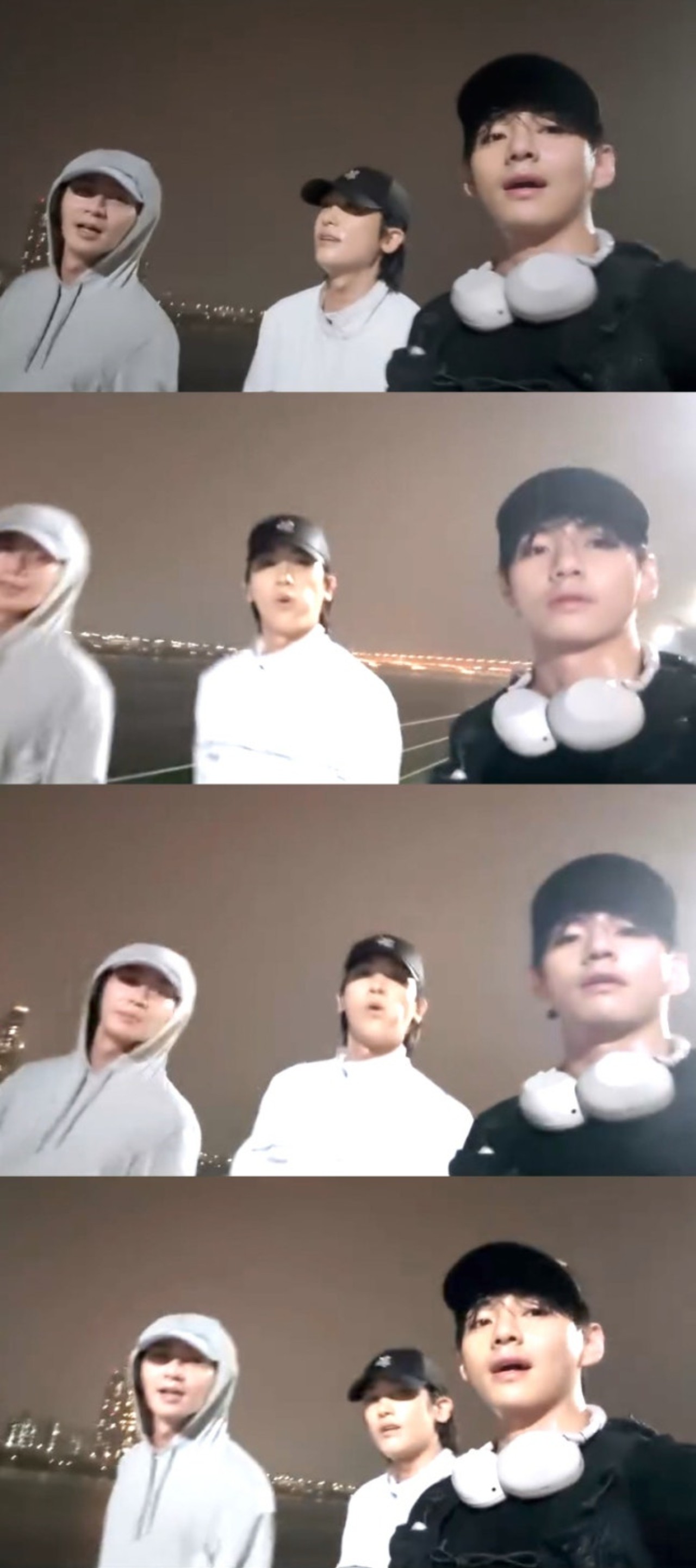 グループ「BTS(防弾少年団)」のVが、俳優のパク・ソジュン、パク・ヒョンシク(ZE:A)と一緒に漢江を散歩しました。