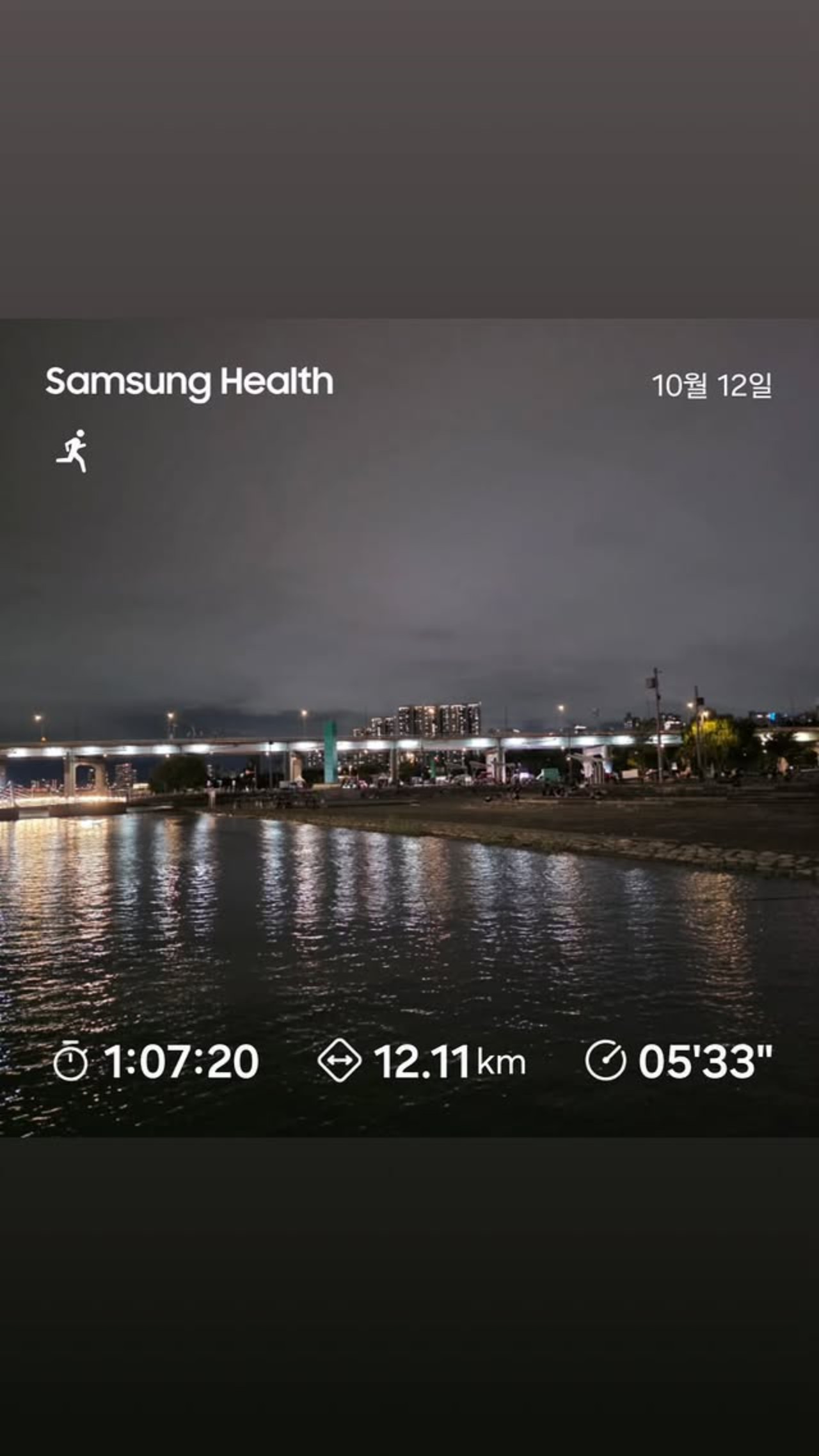 12日、チョン・へインは自身のInstagram Storiesには、夜のハンガン(漢江)をランニングして撮った認証ショットが投稿されました。