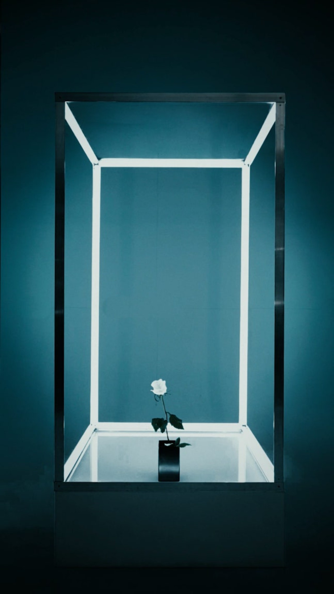 ガラスケースの中には真っ白なバラも見えました。 バラはつぼみが弾けそうなほど膨らんでいました。 心臓の拍動音で期待感を刺激しました。