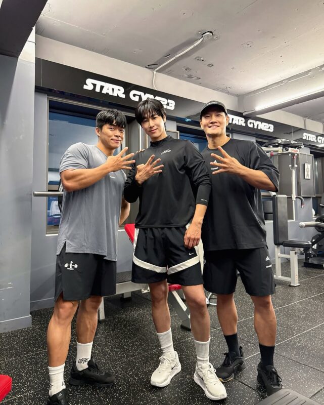 写真には、歌手キム・ジョングクとジムで仲良くカメラに向かうユンホの姿が盛り込まれている。