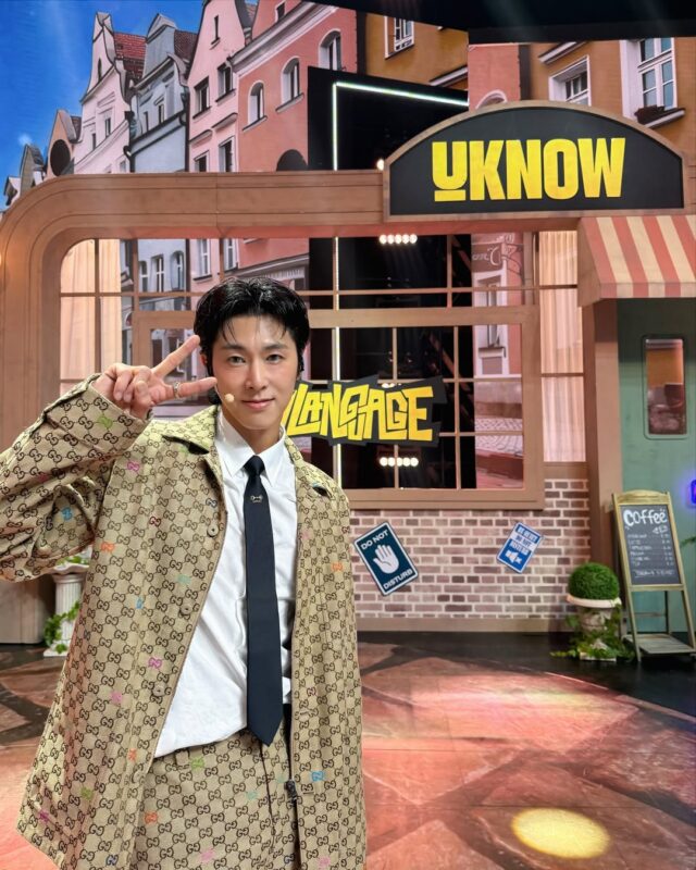 写真には、番組のセットを背景にしてポーズを取るユンホの姿が盛り込まれている。