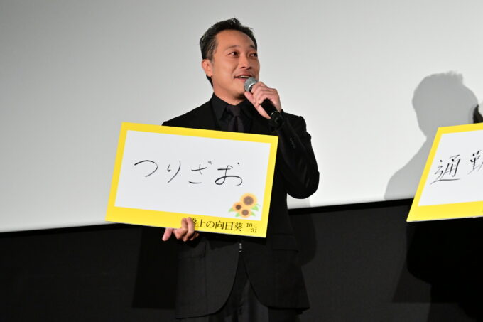 物語の鍵を握る桂介の元婚約者・宮田奈津子役の土屋は、坂口とは初共演。坂口について「スタッフさんとよくお話をされているイメージで、カメラマンさんにボケてツッコまれたり。撮影中は向日葵がこうなるくらい(下を向きながら)暑かったのに、健太郎さんは元気にコミュニケーションを取られていました。座長さんが元気でいてくださるのはとても助かりました」とニコリ。桂介の小学生時代に将棋を教えた恩人・唐沢光一朗役の小日向は「最近は日本映画が活気づいている中で、素敵な作品に参加出来て嬉しいです」と満足そうだった。桂介の父親・上条庸一を演じた音尾は、坂口との灼熱のガチンコ場面に触れて「真夏の炎天下の中でぶつかり合いましたが、坂口君は普段から優しい方で。大変なシーンなのに合間に僕の事を気遣ってくれて…大好きになりました!」とすっかりゾッコン。この馬乗りになって音尾の首を絞める当該シーンに坂口が「あまりにも暑すぎて汗がダクダク音尾さんにかかってしまって。でも両手がふさがっているので汗も拭けないし、芝居としてやりづらいだろうなと思った」と反省の弁になると、音尾は「いやいや。ここでしっかり言っておきたいのは坂口君の汗は…しょっぱいです!それだけはお伝えしたい!」と謎報告。まさかの“暴露”に坂口が「それはそうでしょう!?」と爆笑する横で、渡辺は「そのシーンを観て笑われたらどうするんだ!?良いシーンなんだからあ」と笑いながら呆れかえっていた。