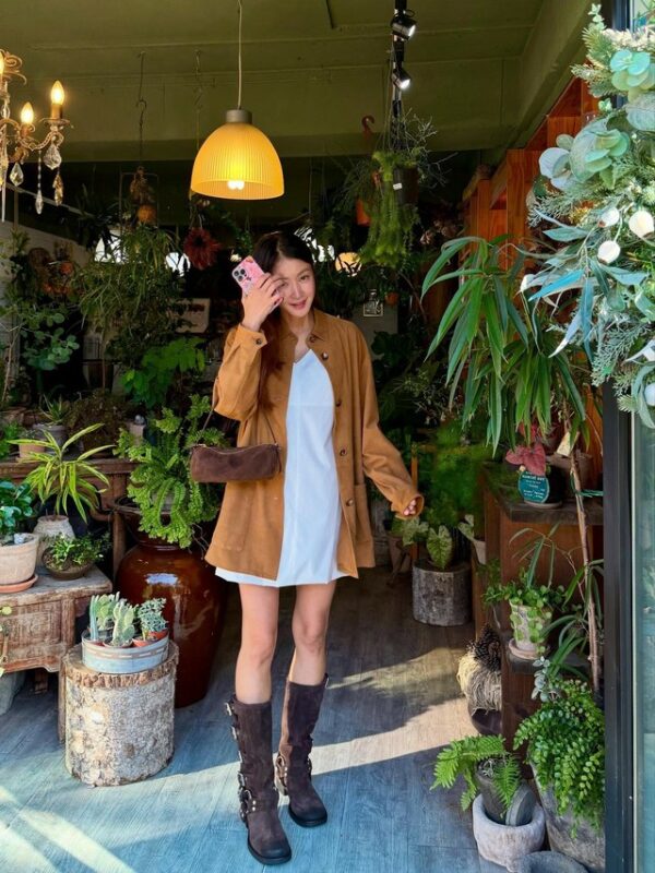 公開された写真では、イ・シヨンが白いワンピースにブーツ姿でゆったりとした時間を過ごしている。まもなく2人目の出産とあって、大きなお腹が見える。