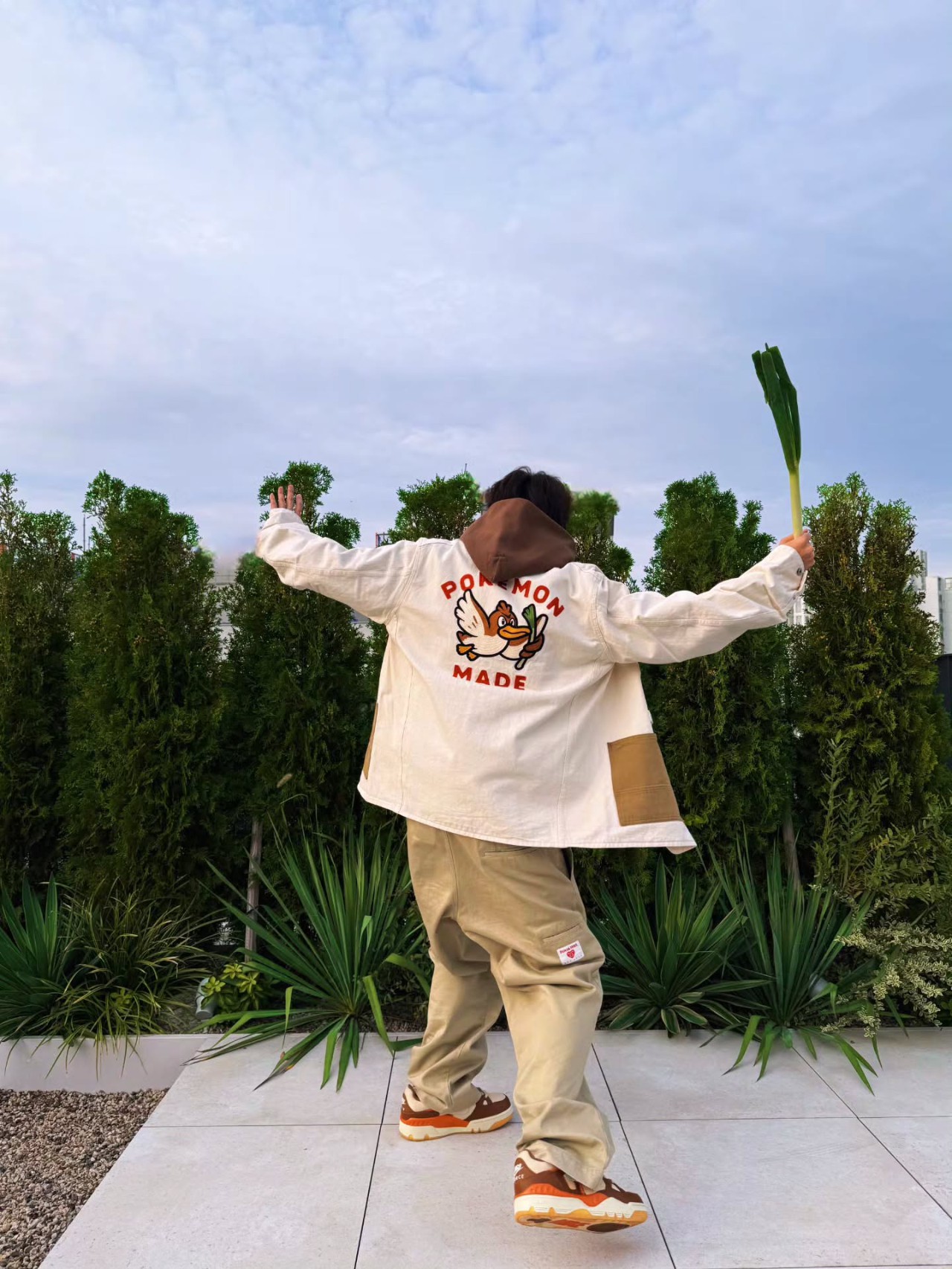 公開された写真には、J-HOPEがアパレルブランド“HUMAN MADE”が「ポケットモンスター」とコラボしたアイテムを着ています。 J-HOPEは、「ポケットモンスター」の“カモネギ”がプリントされたパーカーにジャケットを着て、長ネギを持ってポーズをとって、ユーモラスな表情を見せています。