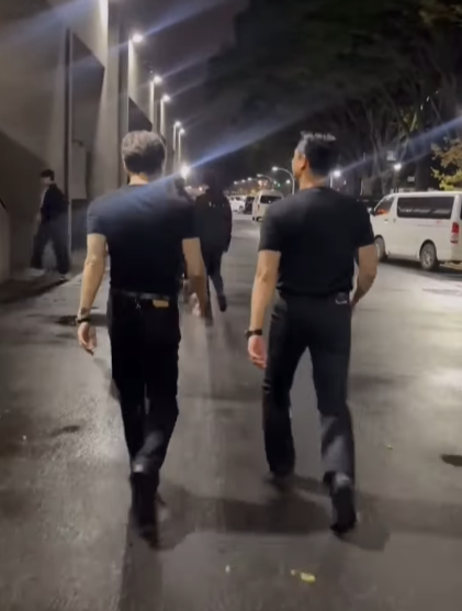 ボディガードと見分けがつかないくらいたくましいジェジュンの体型が感嘆を誘っている。