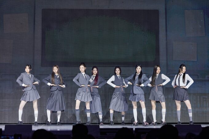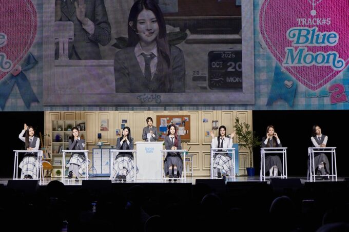 この日のイベントでは、収録曲の魅力を紹介する「FOCUS基礎探求時間」、休み時間のミッションに挑戦しハートを集めて“授業の準備物”を見つけ出す「How2getHearts」、フィジカルアルバムを実際に開封しながらお気に入りのカットを選ぶ「FOCUS深化探求時間」など、学校をテーマにした多彩なコーナーを展開。8人の息の合ったチームワークを見せ、カムバック活動への期待をさらに高めた。