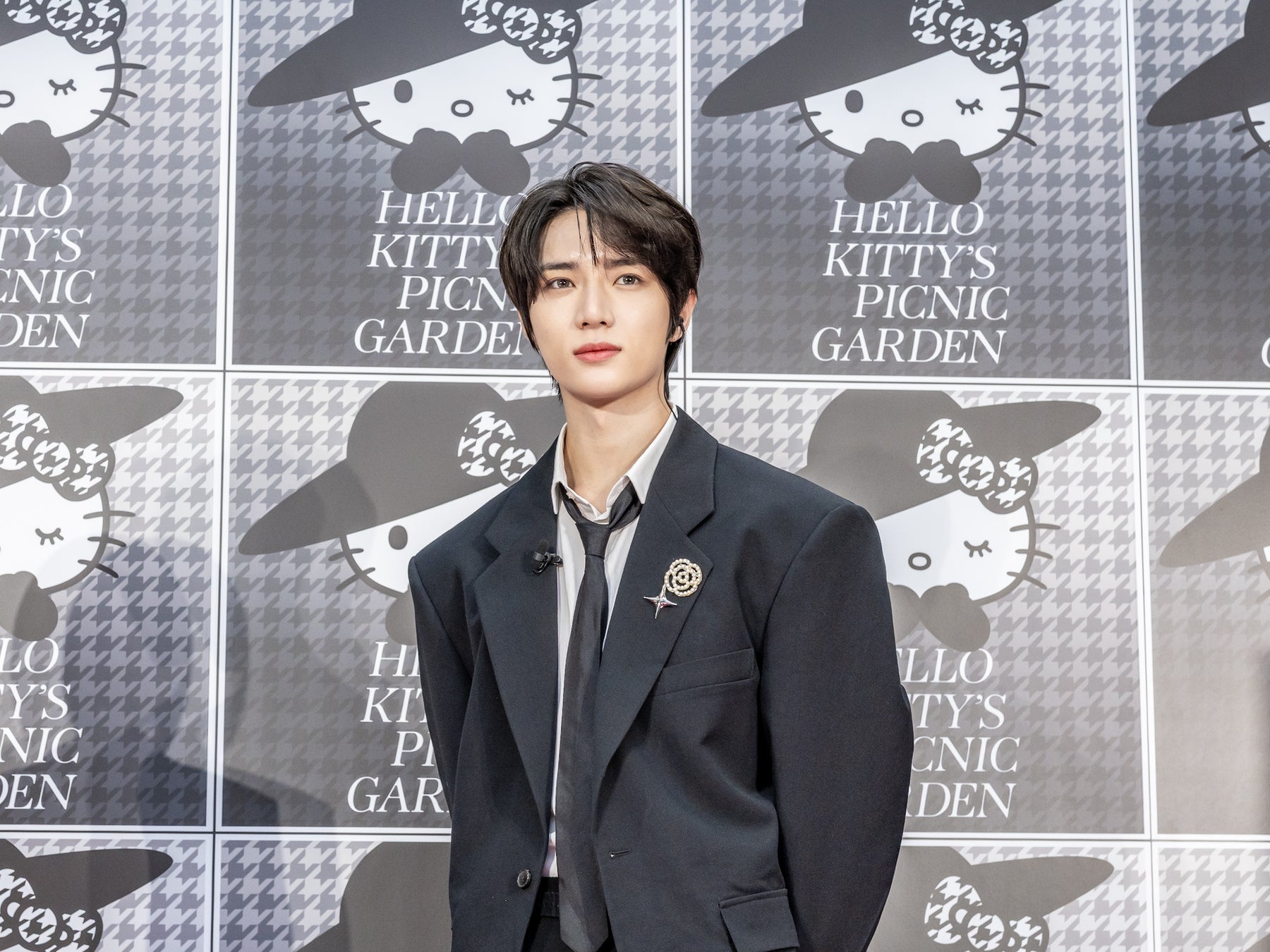 ジャケットスタイルで登場したBEOMGYUさんは、ファッションのポイントについて「スペシャルなイベントなので、カッコよくしてきました。黒いスーツかっこいいですか?」と、会場に集まったメディアに問いかけました。白のパンツスタイルに千鳥格子柄のタイをあしらい登場した玉城さんは「“シンプルで大人っぽい”を意識して、キティちゃんとおそろいの柄を取り入れてコーデを組んでみました。」とコメントしました。