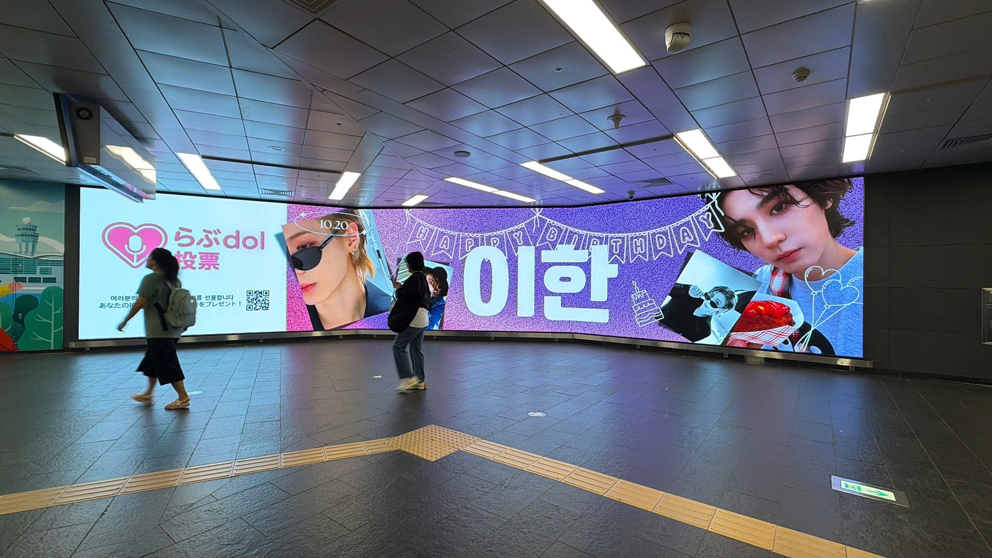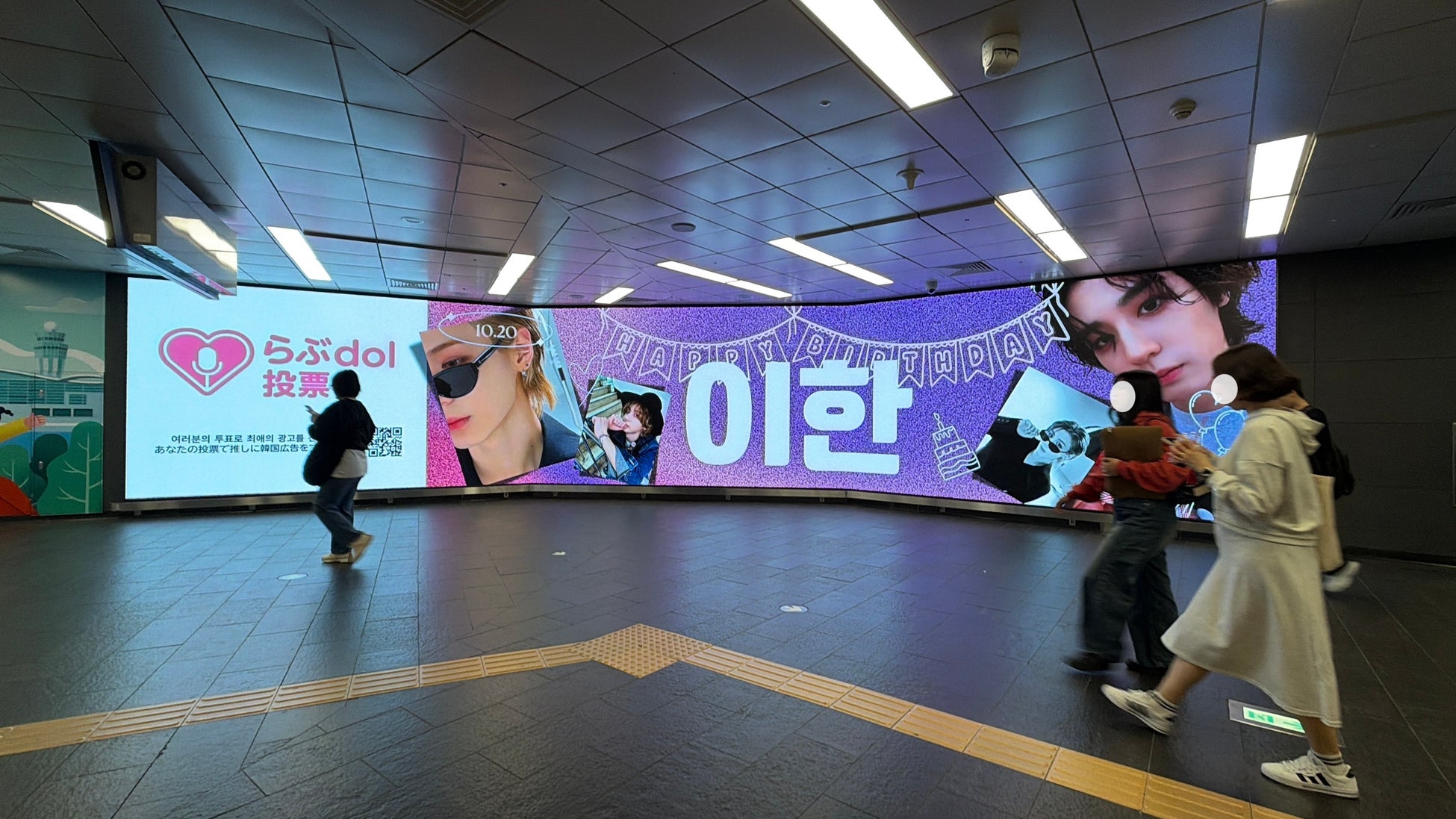 見事1位を獲得したイハンには、特典として韓国・弘大(ホンデ)エリアのデジタルサイネージにお祝い広告が贈られました。