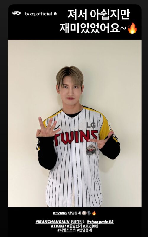 写真には、“LGツインズ”のユニフォームを着てポーズを取るチャンミンの姿が収められている。チャンミンは、“LGツインズ”の熱狂的なファンで知られている。チャンミンは「負けて残念だけど、面白かったです」とコメントした。