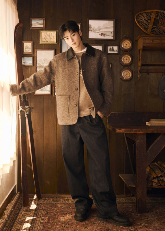 写真はセピア色で処理され、ニットやダウンべスト、トレーナーなどを着たチャウヌの姿が盛り込まれている。