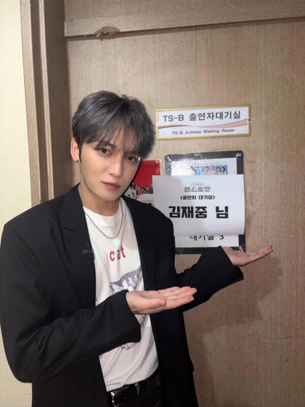 ジェジュンは楽屋の前での様子も伝えて放送に対する関心を高めている。
