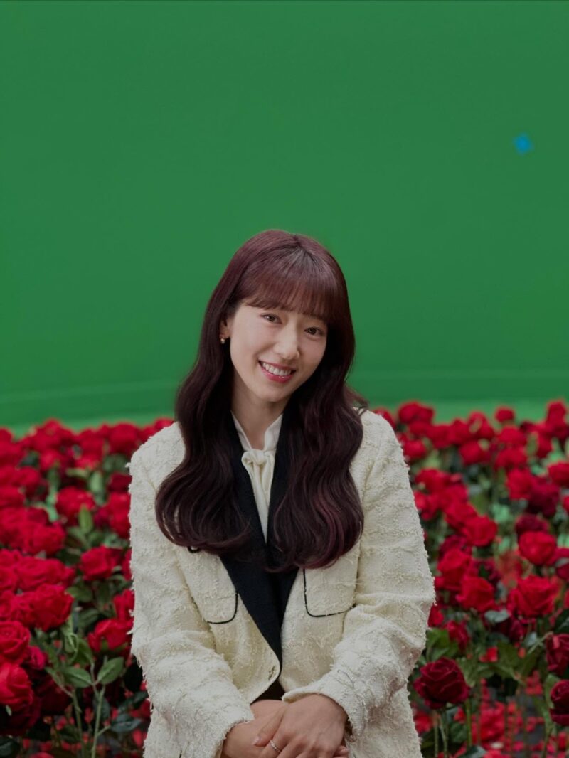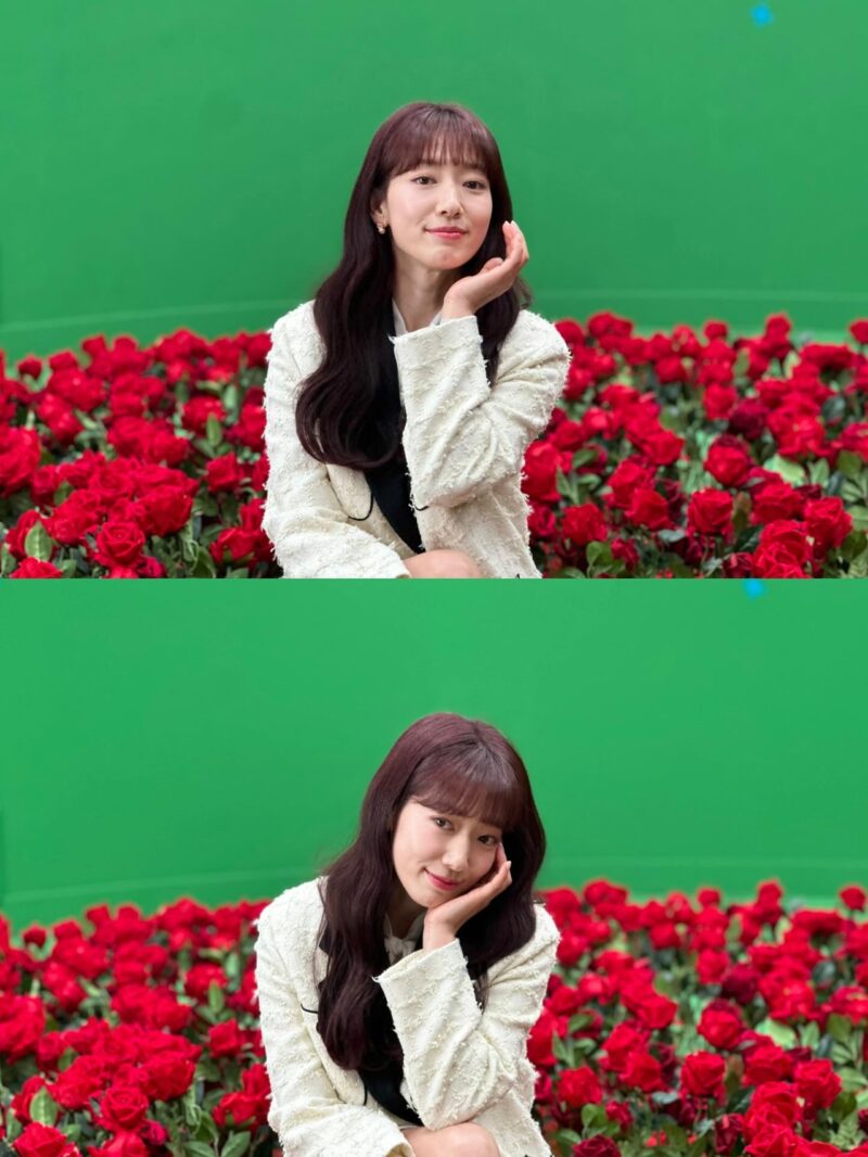 一緒に公開された写真には、真っ赤なバラの花がいっぱいの空間に座ってポーズをとっているパク・シネの姿が盛り込まれている。