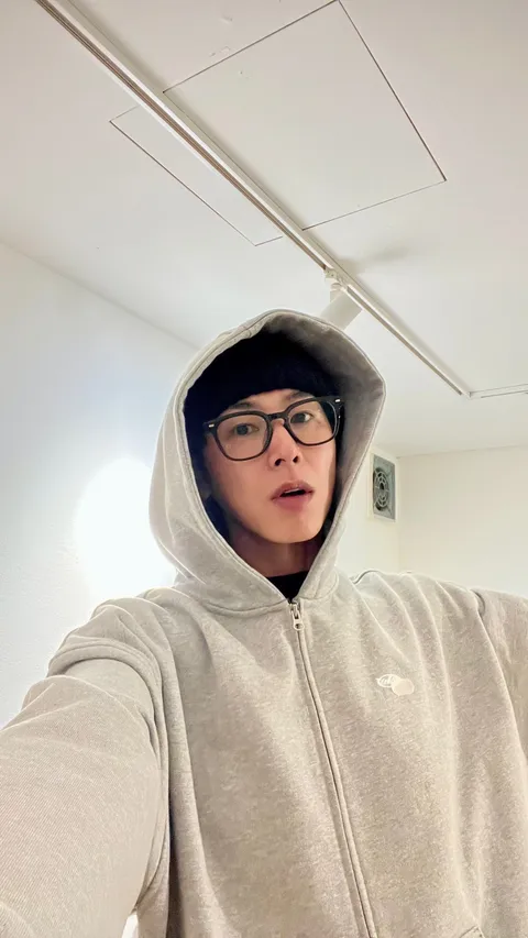 ユンホはブラックのニット帽にフードをかぶった姿で自撮りをしている。