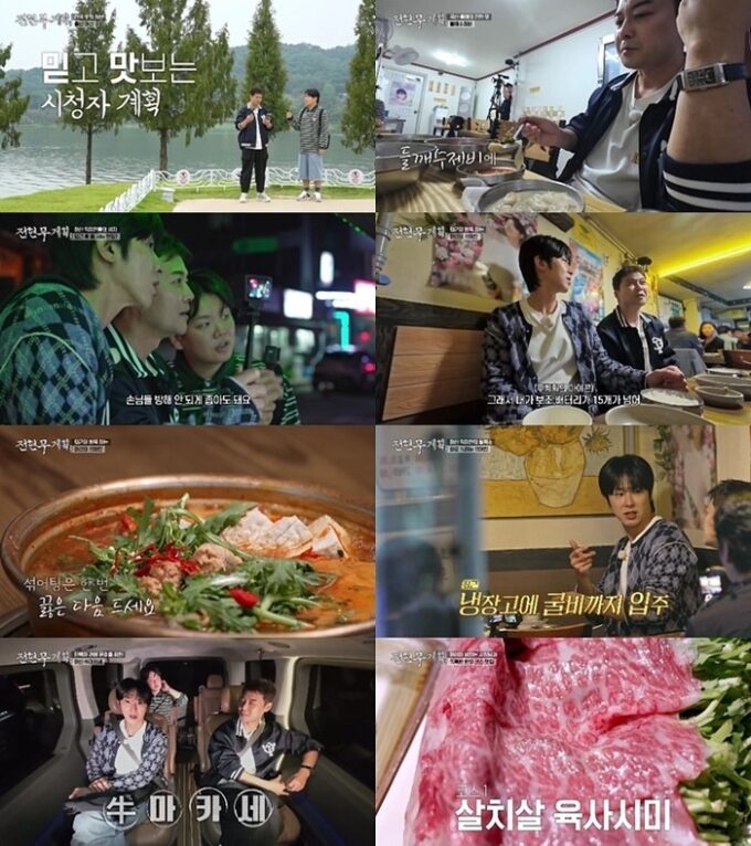 7日(金)に放送された街の美味しい食堂を巡るモッパンバラエティー「チョン・ヒョンム計画3」(MBN・ChannelS・SKブロードバンド共同制作)第4話では、チョン・ヒョンムとクァク・ジュンビンが“パワーJスーパースター(計画的)”ユンホと共に“66番目のモッパンバラエティー”=チュンチョンナムド(忠清南道)アサン(牙山)市のグルメを徹底攻略。視聴者から寄せられた情報をもとにした“視聴者計画”のゴマスープすいとん(エゴマの粉をたっぷり使ったスープのすいとん)店から、アサンを制した「特製ミックス・タラ鍋」店、そして迫力の“解体ショー”が見られる「最高級ブランド牛『韓牛(ハヌ)』を使用したお任せコース」店まで食べ尽くし、新鮮な情報とヒーリングを届けた。
