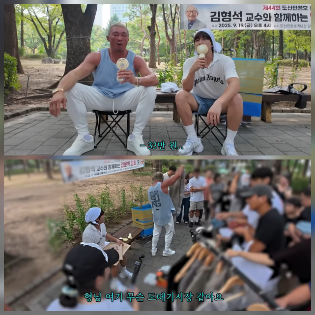 しばらくして驚くべき光景が展開されました。人が集まり、わずか15分ですべての品物が完売しました。価格はほとんど1万~2万ウォン(1000~2000円)台で総収益は33万ウォン(約3万6000ウォン)でした。