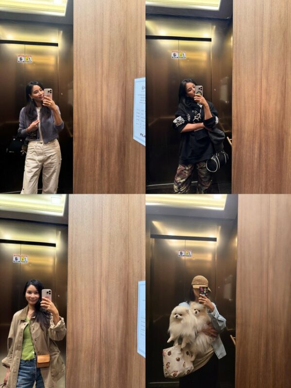 コ・ソヨンがエレベーターで撮ったootd(Outfit Of The Day略、きょうの服装)を大放出した。