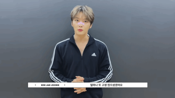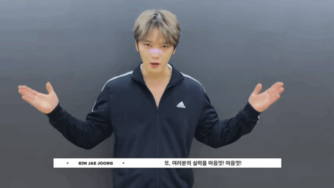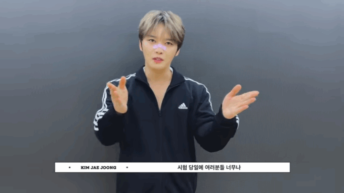 動画でジェジュンは、鼻にピンクの絆創膏を貼ってネイビーのトレーニングウェアを着た姿で登場した。そして、大きなジェスチャーと共に「2026年度の大学修学能力試験が近づいています。修能を準備するためにたくさんの苦労をされたと思います。昨年も応援しましたが、今年は私の応援が少しでも皆さんの助けになって、ぜひ希望した結果が出たらいいと思います。これまで長い間、この日のために最善を尽くしたみなさん、とても尊敬します。お疲れさまでした。これまでの努力が無駄にならないように、そして良い結実が成されるように私がここで応援します。みなさん、試験当日は緊張しすぎないで、ふだんのように落ち着いて皆さんの実力を思いっきり発揮されることを願っています。最後まで最善を尽くして、良い結果が出ることを願っています」と力強い応援のメッセージを送った。
