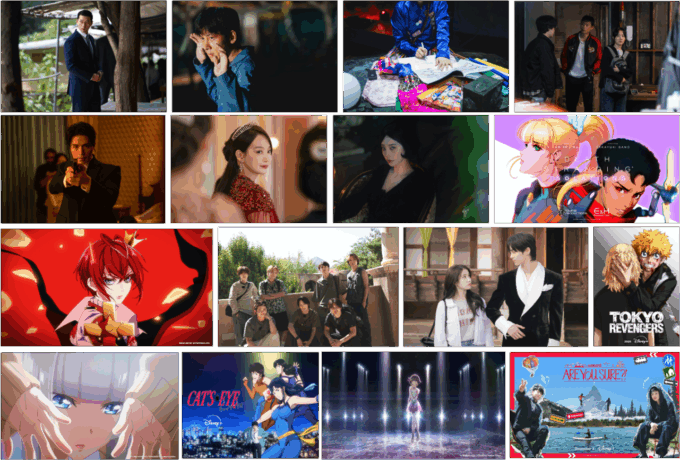 左上から:『メイド・イン・コリア』、『捏造された都市』、『占い師たちの運命バトル』、『ゴールドランド』、『殺し屋たちの店』シーズン2、『再婚承認を要求します』、『幻惑の恋』、『DEATH STRANDING ISOLATIONS (Working Title)』、『ディズニー ツイステッドワンダーランド ザ アニメーション』シーズン 1「エピソード オブ ハーツラビュル」、『Travis Japan Summer Vacation!! ―7 人のアメリカ旅―』、『パーフェクト・クラウン』(原題)、『東京リベンジャーズ』三天戦争編、『ワンダンス』、『キャッツ♥アイ』後編、『メダリスト』第 2 期、『Are You Sure?! 』シーズン 2