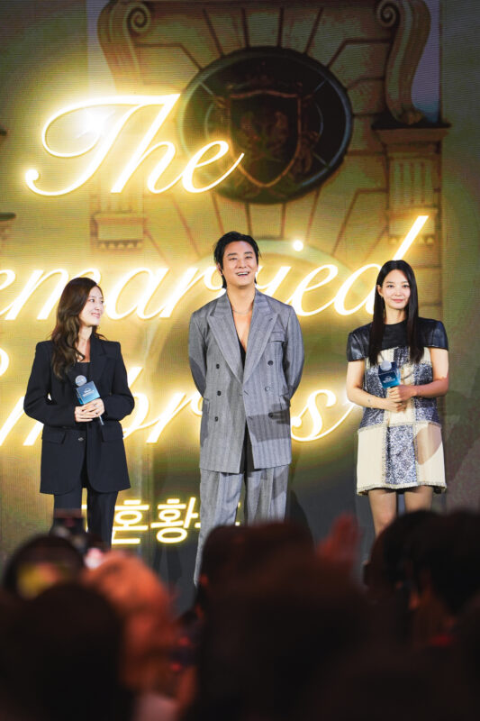 人気ウェブトゥーンとウェブ小説を原作とする『再婚承認を要求します』。登場人物のスチール公開段階から、記者たちのすさまじいリアク ションで会場は大盛り上がり。質疑応答中の記者たちの熱視線が、作品への期待度を証明していた。