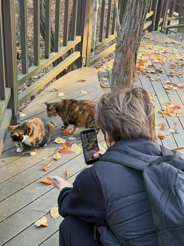 また、山で出会った猫の写真を撮る後ろ姿も公開されてほのぼのとした雰囲気を感じさせている。