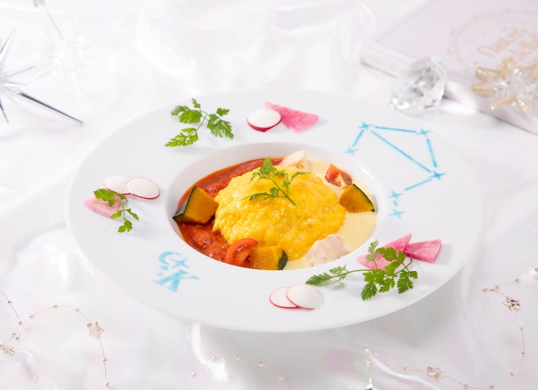 メニューは、メンバーたちの星座を表現したメンバー名入りのフードプレートをはじめ、天の川や星空に浮かぶ月をモチーフにしたデザート、星型アイスが浮かぶドリンクなど、ロマンティックで神秘的なラインアップをご用意いたしました。