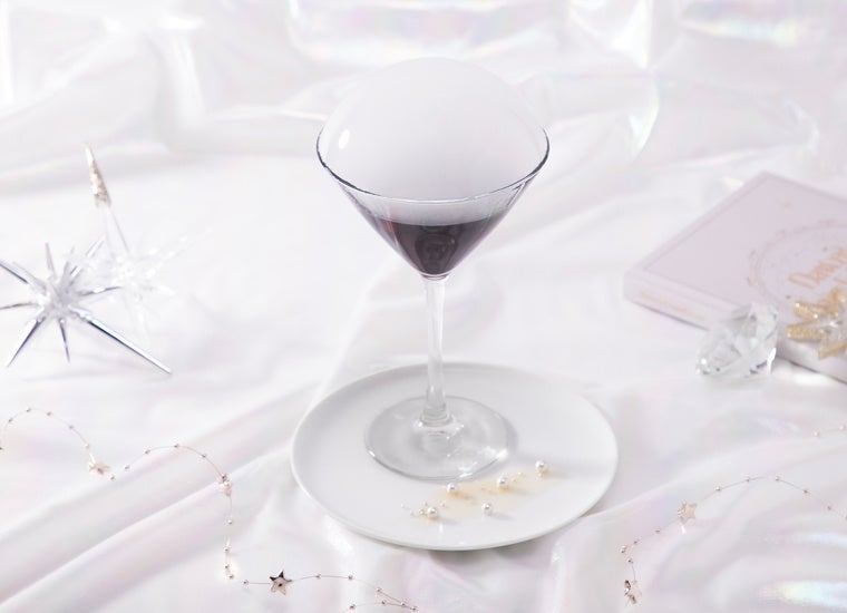 泡が消えると現れるブルーベリー風味のドリンクが幻想的な一杯