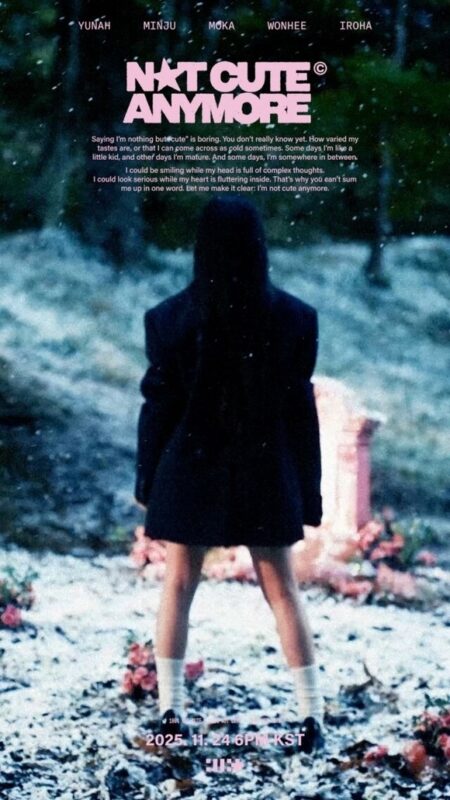 短いが強烈で破格的です。 最初の映像では雪の降る静かな風景の中、ぼんやりと立つ誰かの後ろ姿が妙な緊張感を生みます。 続く2本目の映像では、大胆なブリーチヘアとシックな表情で雰囲気を圧倒したモカが銃声を響かせ、視線を釘付けにします。 最後の映像では、謎のベル音と共に「CUTE IS DEAD」(かわいさは死んだ)と刻まれたピンク色の墓石が登場し、本編への関心をさらに高めました。