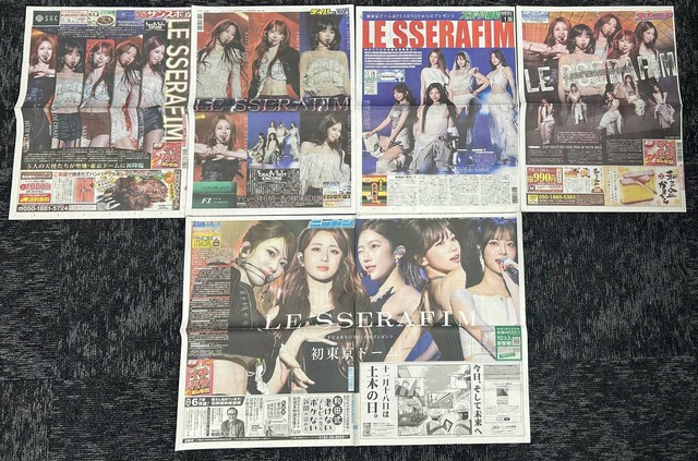 「LE SSERAFIM」が、日本の主要なスポーツ新聞の一面を飾り、話題を集めた。