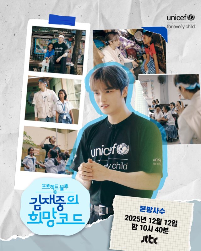 ユニセフ韓国委員会は21日、公式SNSに「気候の危機や紛争、病気などで苦しんでいる世界中の子供たちに希望を伝える特別な番組、『Project Blue』が戻ってきます。3番目のシリーズの主人公は、ユニセフの長くからのスポンサーであるキム・ジェジュンさんが才能寄付で参加してくれました。キム・ジェジュンさんが忙しいスケジュールの中でもフィリピンを訪問して会った子供たちの話は、12月12日金曜日の夜10時40分、JTBCで確認できます。リアタイ視聴で共にしてください!」という文と共に写真を掲載した。