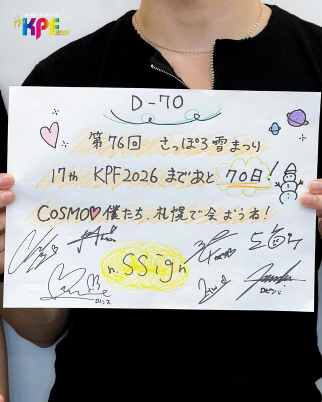 JK DREAMは29日、公式SNSに「17th #さっぽろ雪まつりKPF 2026 2026.2.7(土)Zepp Sapporo D-70 #nSSign と一緒にカウントダウン。COSMO 僕たち、札幌で会おうね!」という文と共に写真を掲載した。