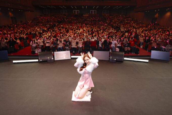 続いては『Perfect Glow-韓国メイク、ニューヨークへ。』にちなみ、パク・ミニョンのビューティー相談所と題されたコーナー。事前にファンから募集した“美に関する悩み”に、本人の体験を交えながら答えた。スキンケアやメイクアップに関することから、ダイエットやメンタル面での自己管理まで、説得力のある実用的なアドバイスにファンたちも真剣に耳を傾けていた。一方で、男性ファンたちにスキンケアの必要性を積極的にアピールするなど、会場が笑いに包まれる瞬間もあった。
