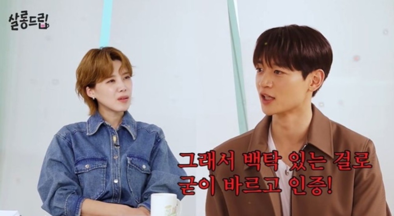 これに対しチャン・ドヨンは、KEY(キー)が「シングル男のハッピーライフ」でミンホについて言及したことを思い出し、「自分の仕事もかかっているから管理をしっかりしなきゃって言ってたのがすごく笑えた」と語りました。 するとミンホは、「特にKEYがよく言ってた。 日焼け止めをちゃんと塗れって。小言が始まる前に塗るんだ。塗ったと言えば何も言わないから。ファンの方々も心配しているようで、見せびらかすように顔が真っ白になるほど塗って出かける」と説明しました。「以前は日焼け止めを3~4カ月使ったのに、最近は1カ月で全部使い切ってしまう」と明かし、見せびらかすためにわざと白浮きするタイプを塗って証明していることを明かしました。