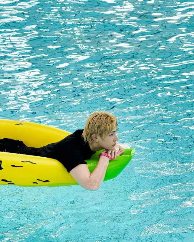 写真には、プールで楽しそうに遊んでいるニコラスとハルアの姿が盛り込まれている。