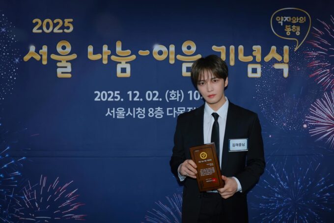 ジェジュンは2日午前、ソウル市役所で行われた「第1回ソウル分かち合い – イウム記念式典」で、新たに制定された「寄付文化活性化有功表彰」を受賞した。