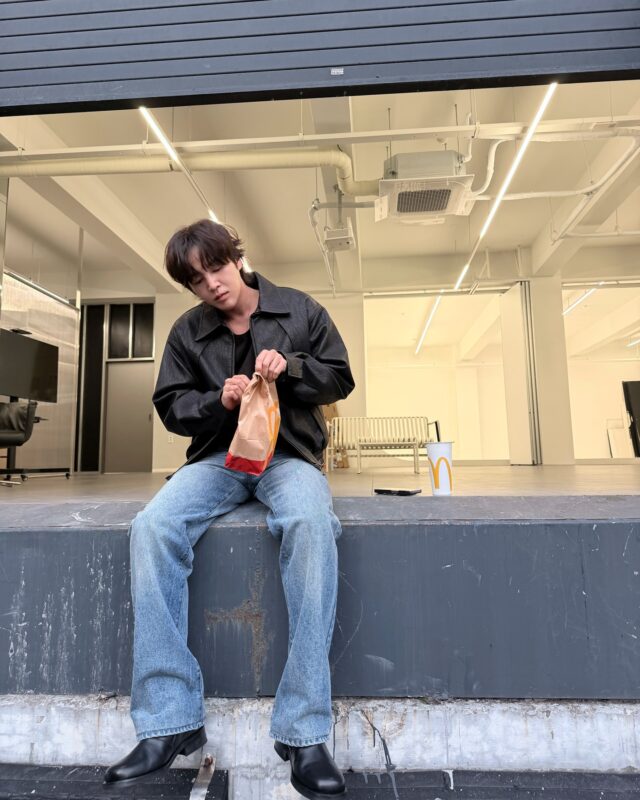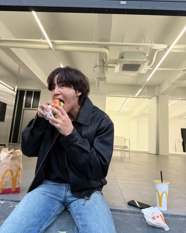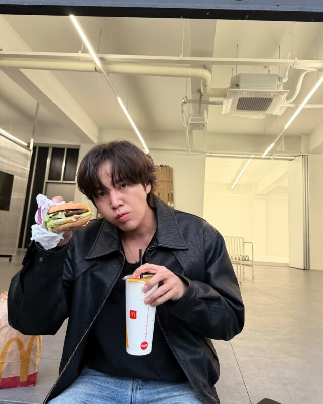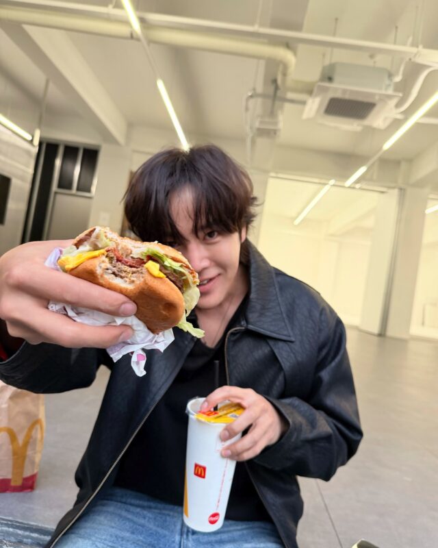 写真には、ハンバーガーを袋から取り出しているチャン・グンソクの姿が盛り込まれている。