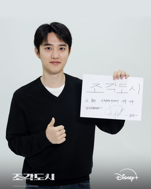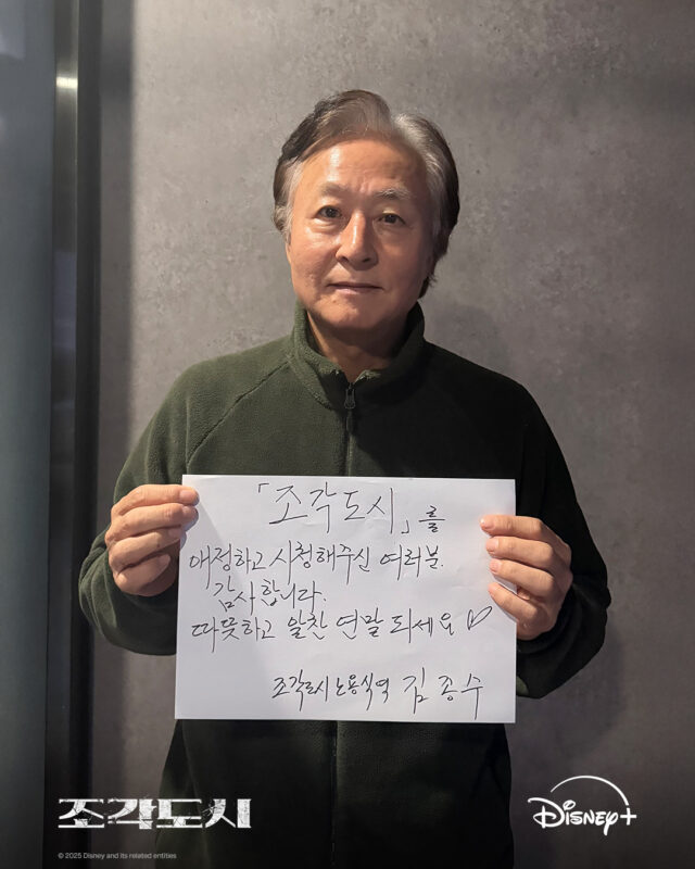 ディズニープラスコリアは5日、公式SNSに「ドーパミンをフルチャージしてくれた <捏造された都市> バイバイ!彫刻ズが特別なあいさつを伝えます。<捏造された都市> 現在ストリーミング中」という文と共に写真を掲載した。
