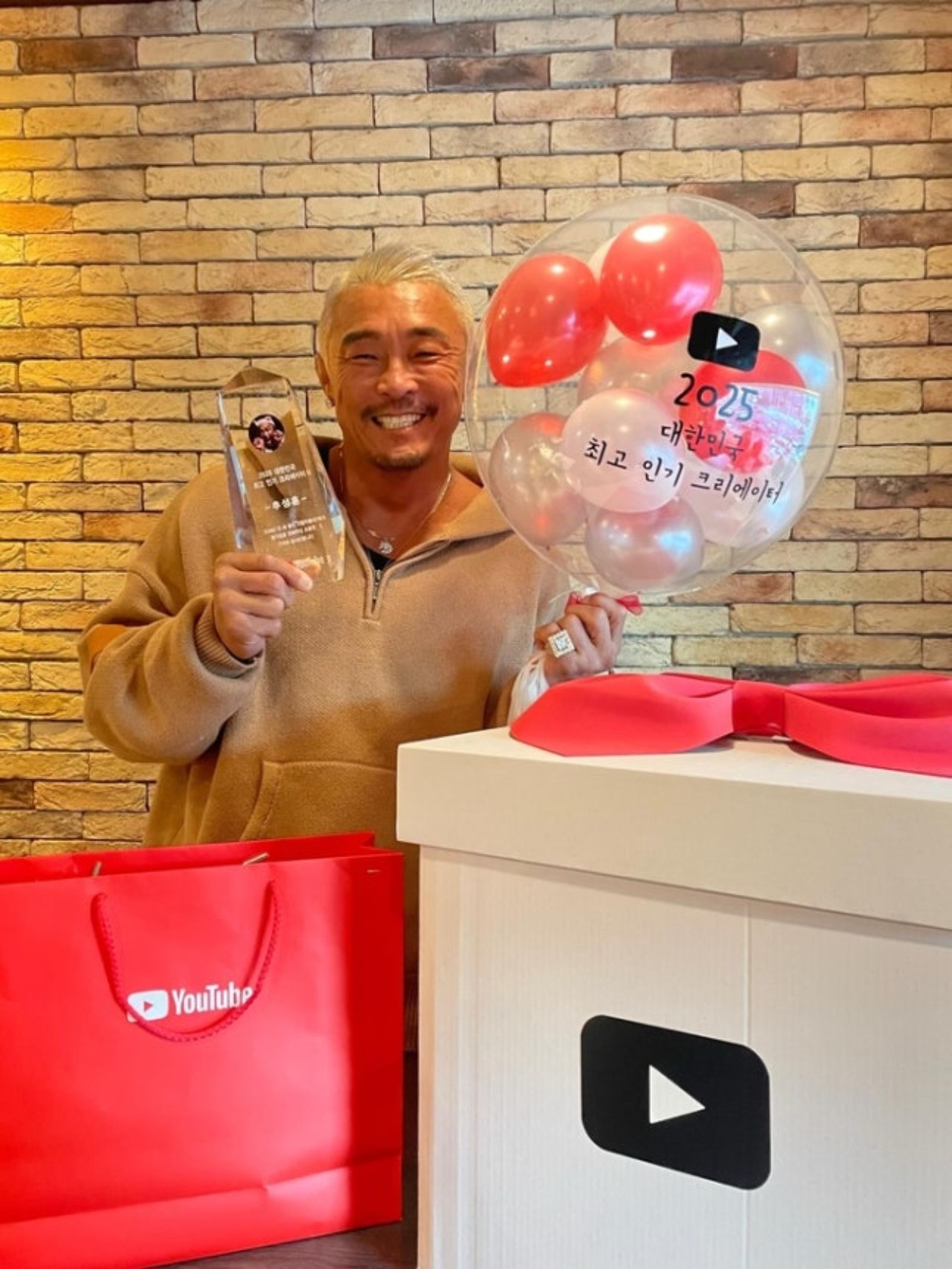 秋山成勲は6日、自身のInstagramを通じて「2025年、YouTube韓国で最高クリエイター賞と人気ランキング1位を受賞しました!本当に皆さんのおかげです!」と、受賞の知らせとともに記念写真を公開しました。