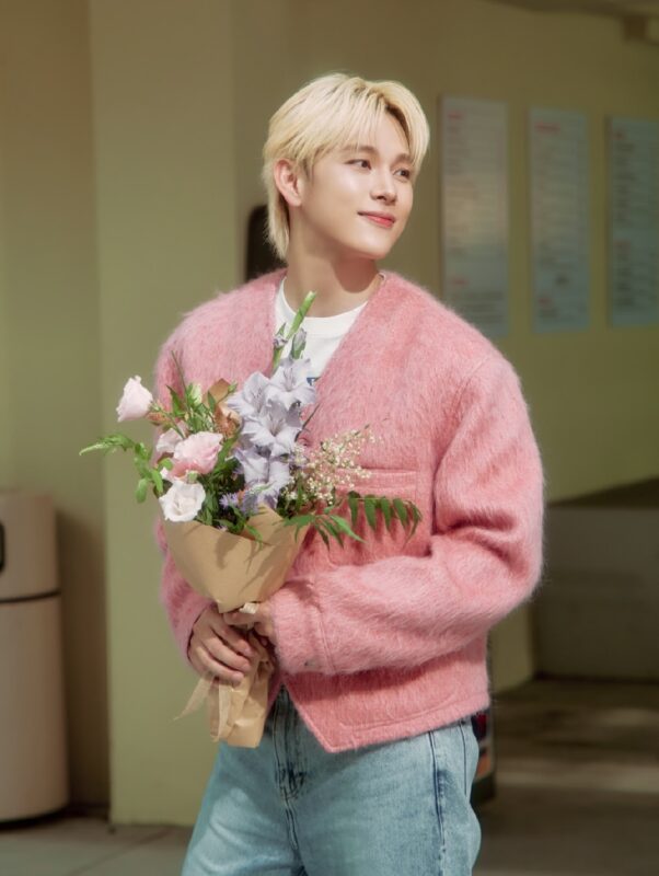 写真には、ピンクのジャケットを着て可愛い花束を持ったたシワンの姿が盛り込まれている。