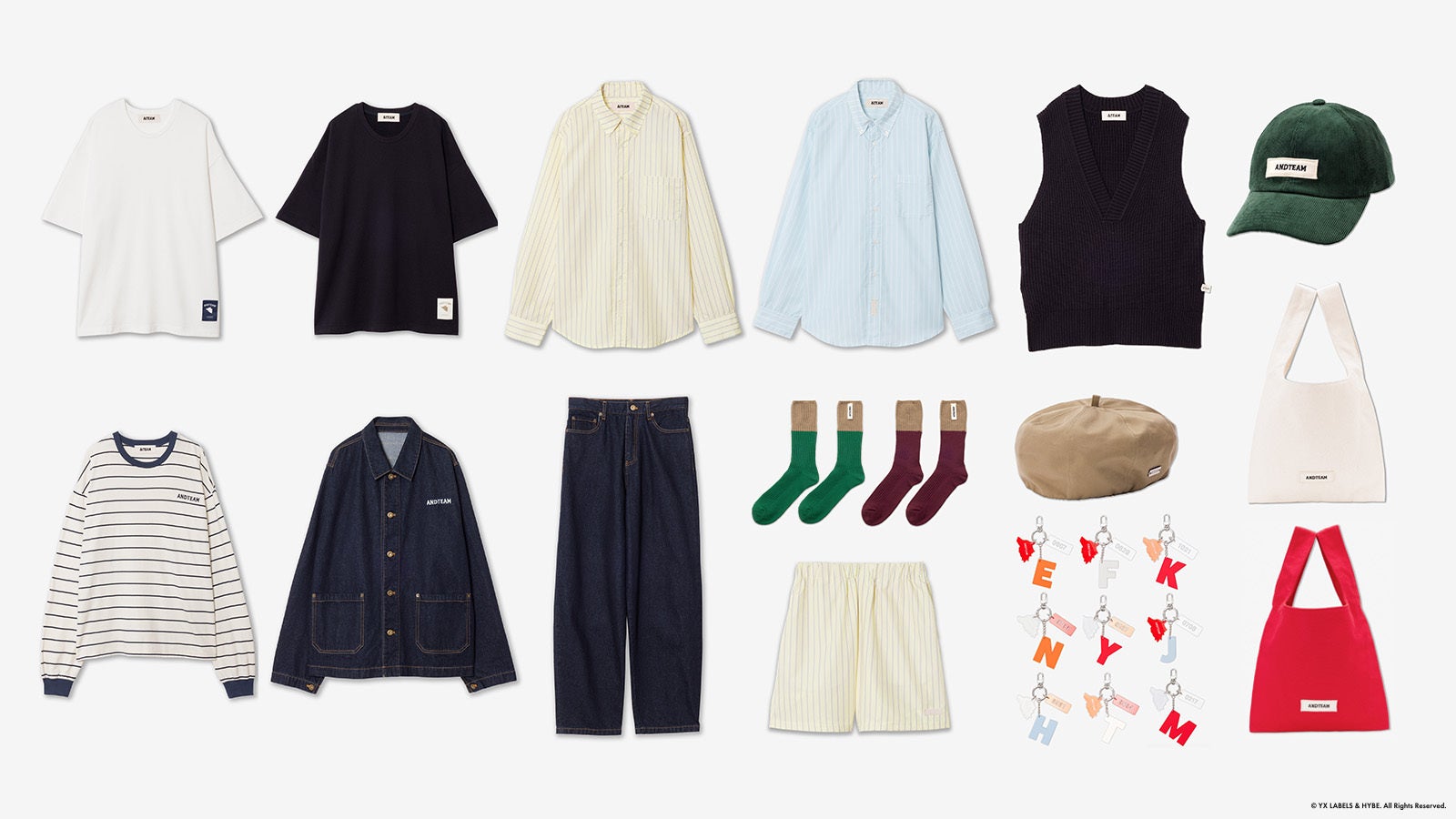 今回販売するのは「自然体の魅力を感じられるひととき」をテーマに、&TEAMのメンバーをイメージしてデザインしたアイテムです。ゆったりとしたシルエットのプルオーバーやニットベスト、キャップなど、リラックスムード漂う全12型のラインナップで、リラックスと洗練が調和するスタイルを提案します。シンプルながらも小物がコーディネートのアクセントとなるよう仕上げられており、オオカミのシルエットが印象的なキーチャームにも注目です。