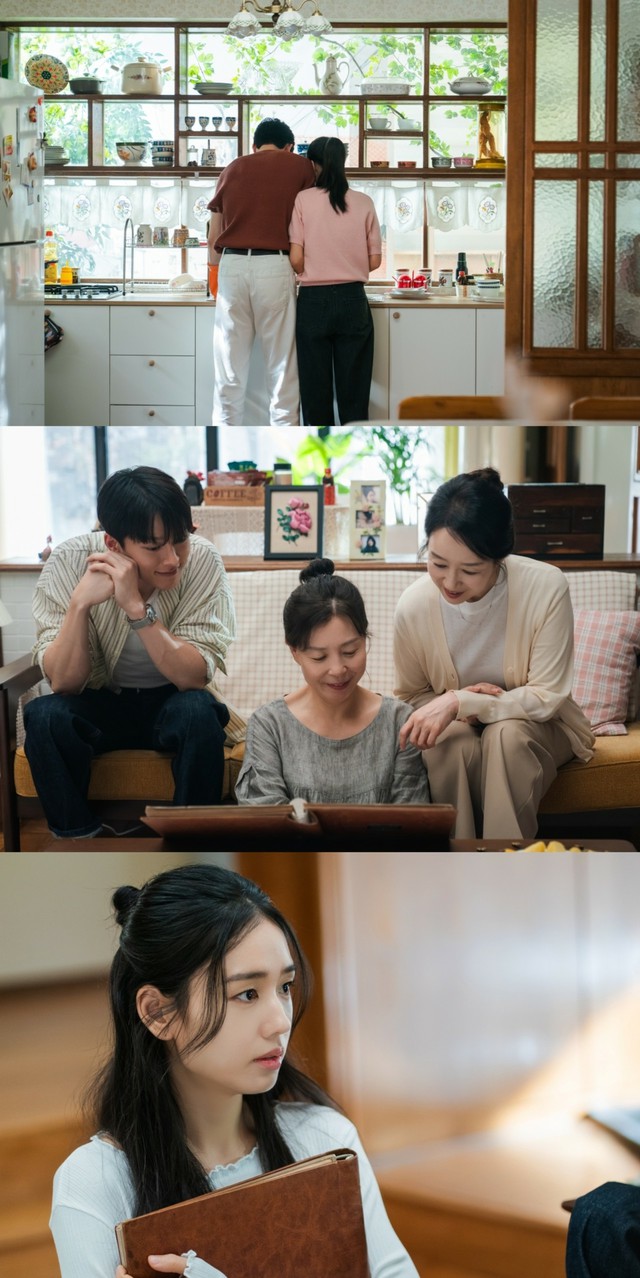 公開された写真は、本日(11日)放送される10話のワンシーンを捉えたものだ。写真の中のジヒョクとダリムはダリムの家の台所に並んで立ち、仲良く二人だけの時間を過ごしている。また、別の写真ではジヒョクが自分の母親のキム・イネ(ナム・ギエ)、ダリムの母親のチョン・ミョンスン(チャ・ミギョン)と一緒に座りアルバムらしきものを一緒に見ている。3人の笑顔が見る人の気持ちまで良くする。
