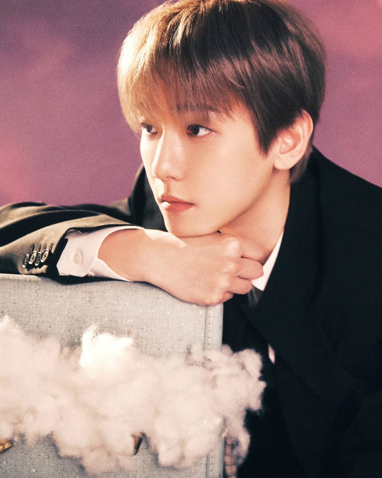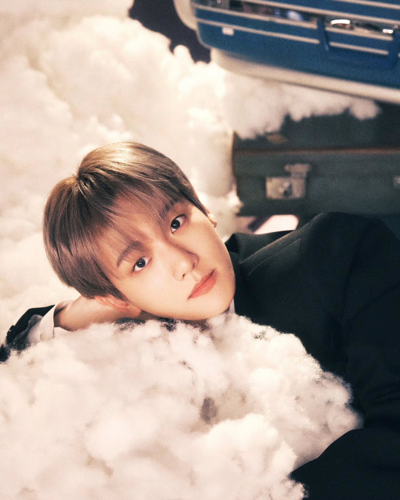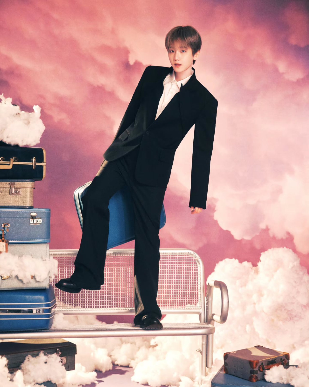 公開された写真の中でベクヒョンは、雲とヴィンテージなキャリーバッグがあふれる空間で落ち着いた表情と余裕のあるポーズを見せ、一味違ったムードを完成させました。 特にあたたかいピンクトーンと幻想的な雰囲気が調和し、既存のワールドツアーの感性を維持しつつアンコール公演ならではの新たな期待感を加え、視線を釘付けにします。
