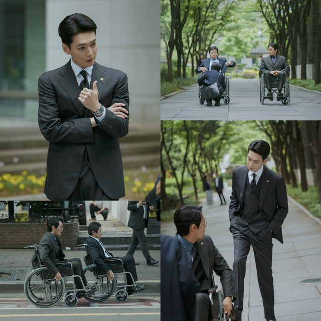 その中で公開された写真には、カン・ダウィ(チョン・ギョンホ扮)がこれを証明するために申請した現場検証の場面が捉えられた。障害を持つ人生がどのようなものか、直接体験させるという名目で、控訴審判事と相手弁護士を並んで車椅子に座らせたのだ。