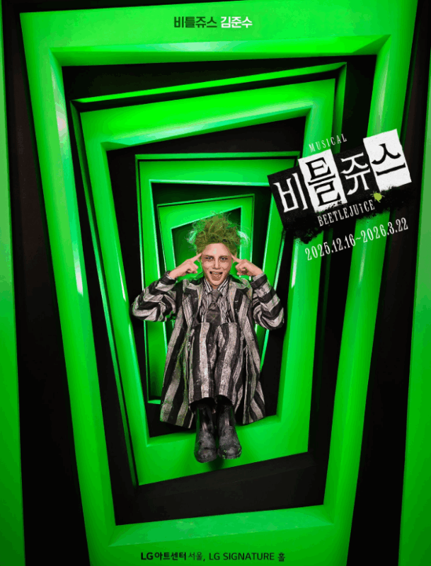 他では見られないジュンスのビートルジュース。彼の新たな挑戦に観客も応えるのか。「ビートルジュース」は12月16日から3月22日まで、LGアートセンターソウルで公演される。