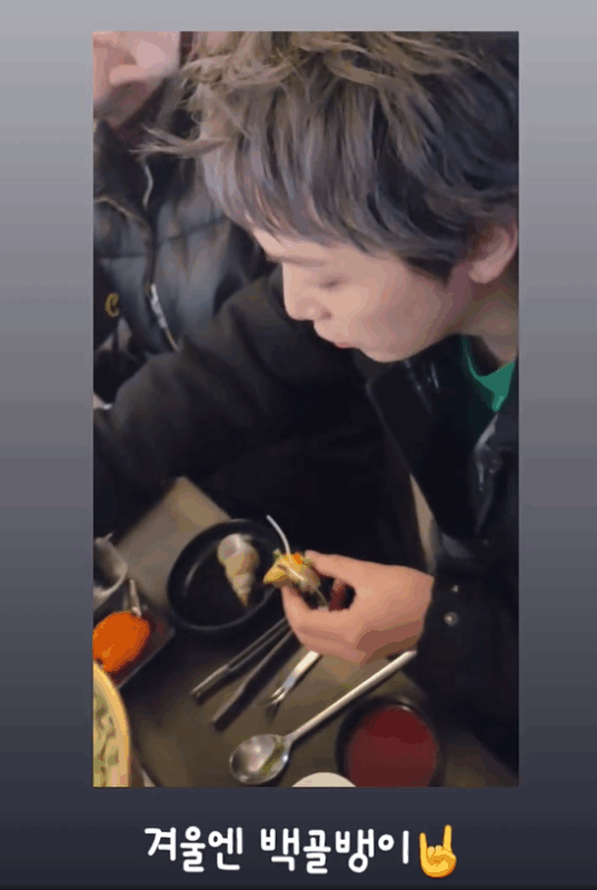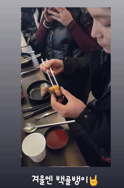 動画には、食事中のホンギの姿が収められている。ホンギは「これちょっと載せて、カイワレダイコンもちょっと載せて」と言いながら真剣な姿で白つぶ貝を食べている。ひとつひとつ食材を載せて美味しそうに食べるホンギの姿が見る人を微笑ませる。