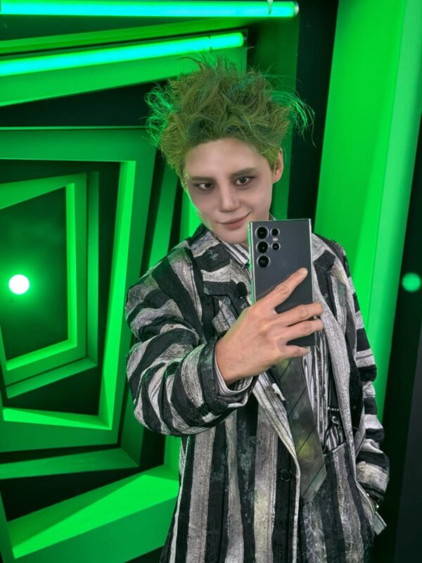写真には、髪の先からつま先までビートルジュースになり切ったジュンスの姿が盛り込まれている。