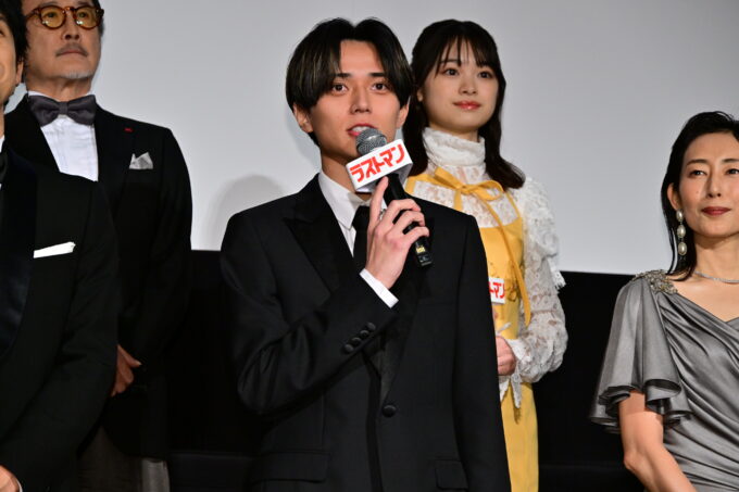 心太朗の甥であり警察のキャリアを約束されたエリート・護道泉役の永瀬は「作品を観て僕が感じた感動やドキドキを観客の皆さんに感じていただきたいです」と期待。捜査支援分析センターの分析官として皆実を支える吾妻ゆうき役の今田は「沢山の方々が観に来てくださって、ようやく公開されるんだなと感じています」とスマイル。国際テロ組織“ヴァッファ”の最高幹部グレン・アラキ役の寛一郎からは「悪役という事で福山さんと大泉さんをボコボコにしています!」と期待感を煽る一言が。