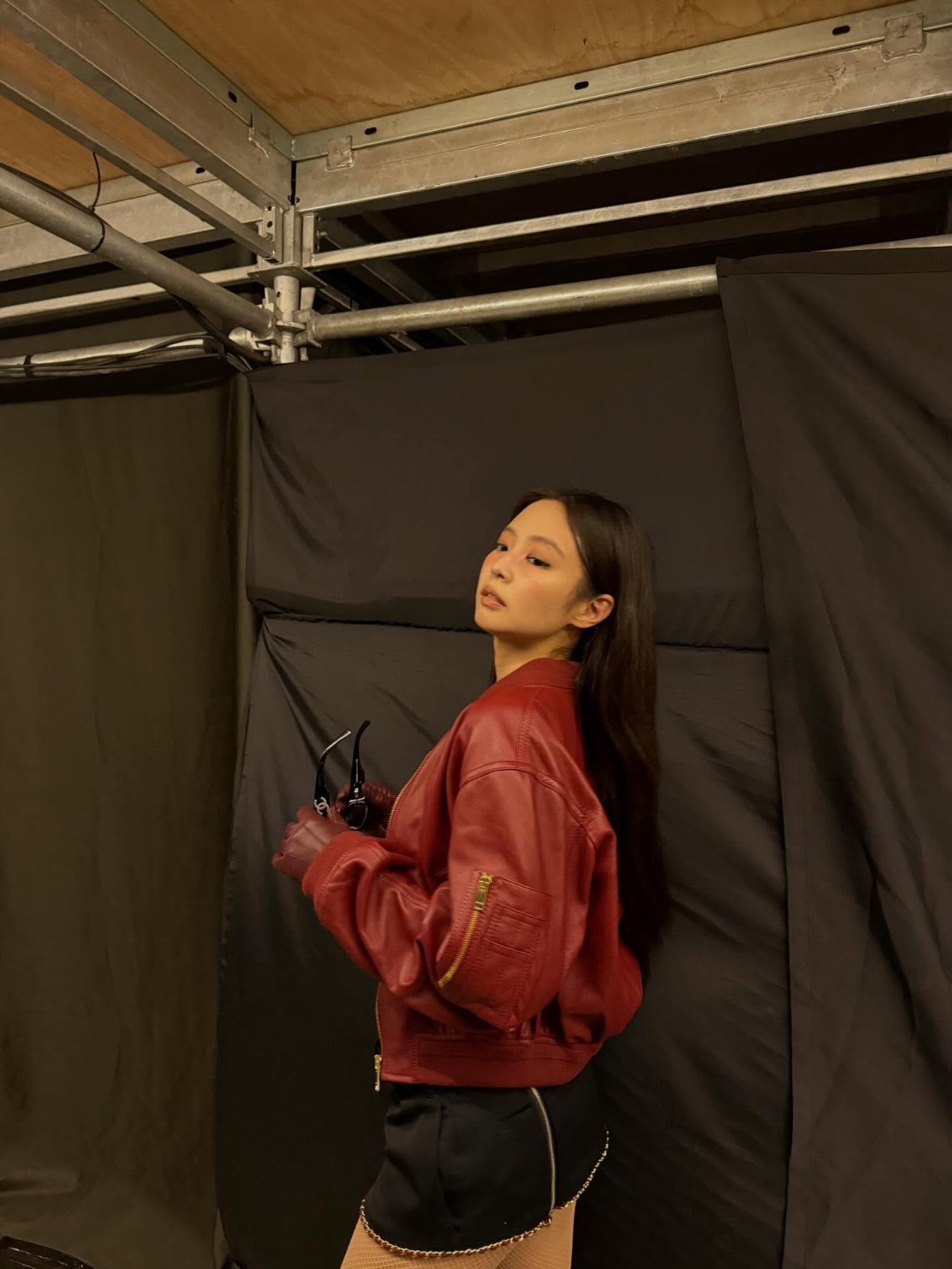 公開された写真の中のジェニーは、公演場の熱気をそのまま引き継ぐかのように大胆で挑発的なファッションで視線を圧倒しました。 特に視覚的な衝撃を与えたのは、ジェニーの破格的な衣装とアティチュードです。 彼女は胸のラインが深く切り込まれたブラックのブラトップに、強烈なレッドのレザージャケットを羽織り、引き締まった腹筋とボディラインを余すところなく披露しました。