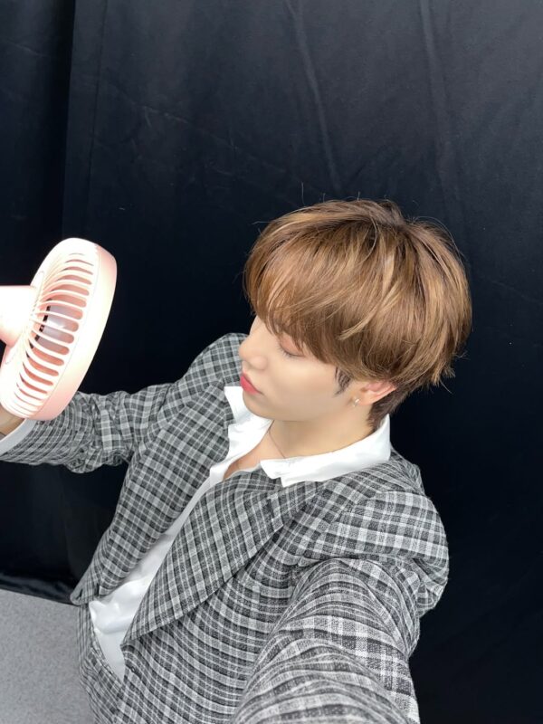 カズタは熱いのか、扇風機の風を受けている様子だ。