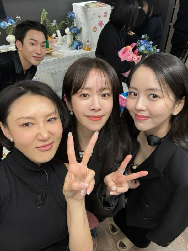 また別の写真では、ハン・ジミンが女優キム・ソヒョンとともに歌手Hwasaの隣で、はにかむようなファン心をのぞかせており、見る者の視線を集めた。